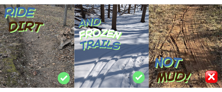 🫡 Respect Trail Closures: Trail managers often close trails during freeze-thaw cycles to protect them. Respect these closures and refrain from riding until the trails have dried and stabilized.